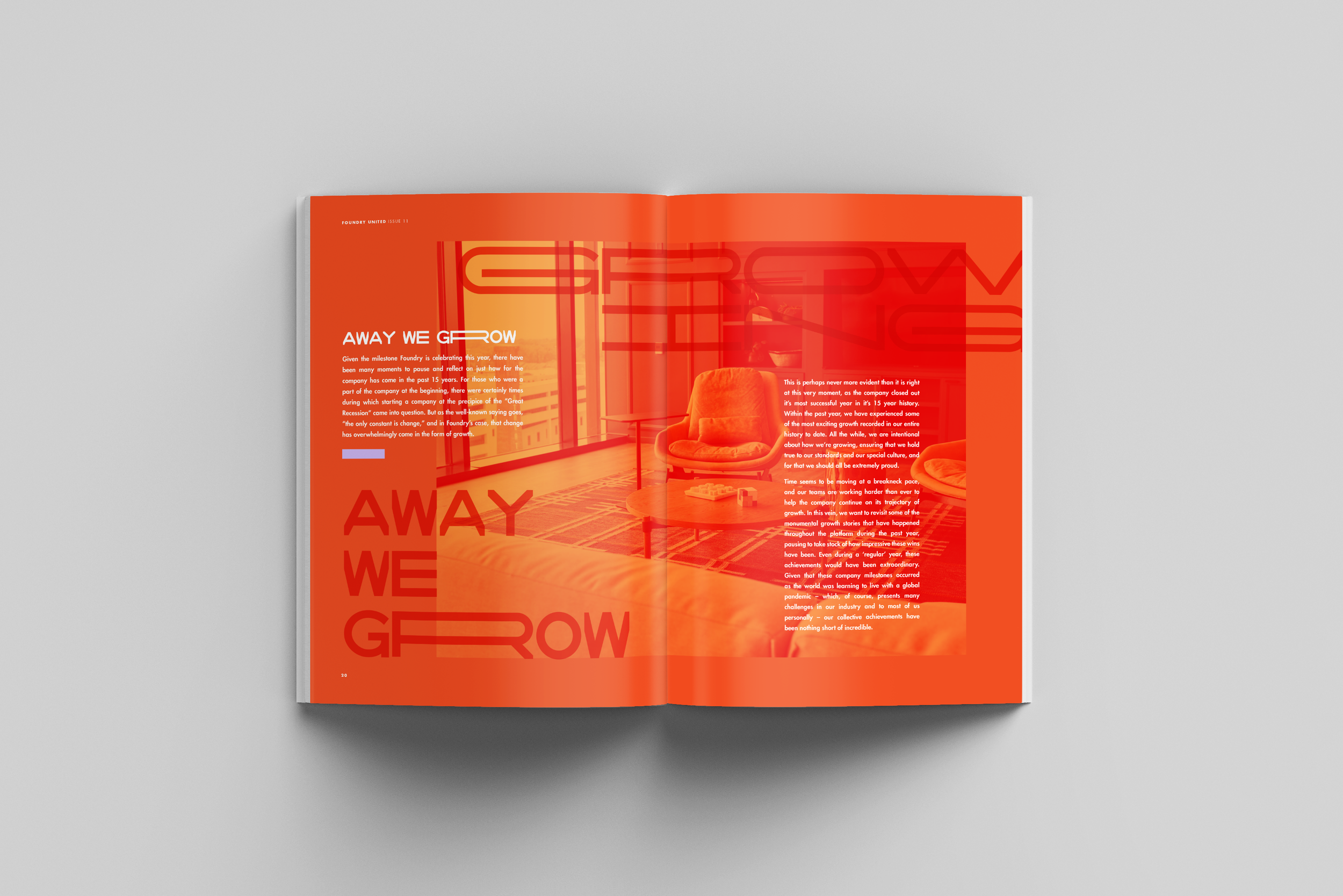 Foundry United is a fully custom internal magazine that showcases recent news, original content, and culture-related updates. EDITORIAL DESIGN EDITORIAL DESIGN EDITORIAL DESIGN *CLICK IMAGES FOR FULL ISSUE